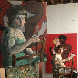 She has a very unique style (check her work out @sandybeearts) and I painted her with her painting behind her.